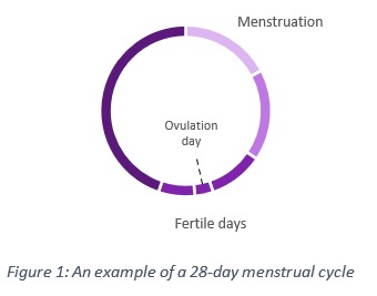 Figure 1 illustrates a typical 28-day cycle, including the days in the month when women could expect to menstruate, and the day when they could expect to ovulate. It is not an exact science because women’s bodies are all different, and women’s cycles may not be consistent from one month to the next. However, this type of information is already available to women and is being used by many women for the purposes of family planning (i.e. planning or avoiding pregnancy).